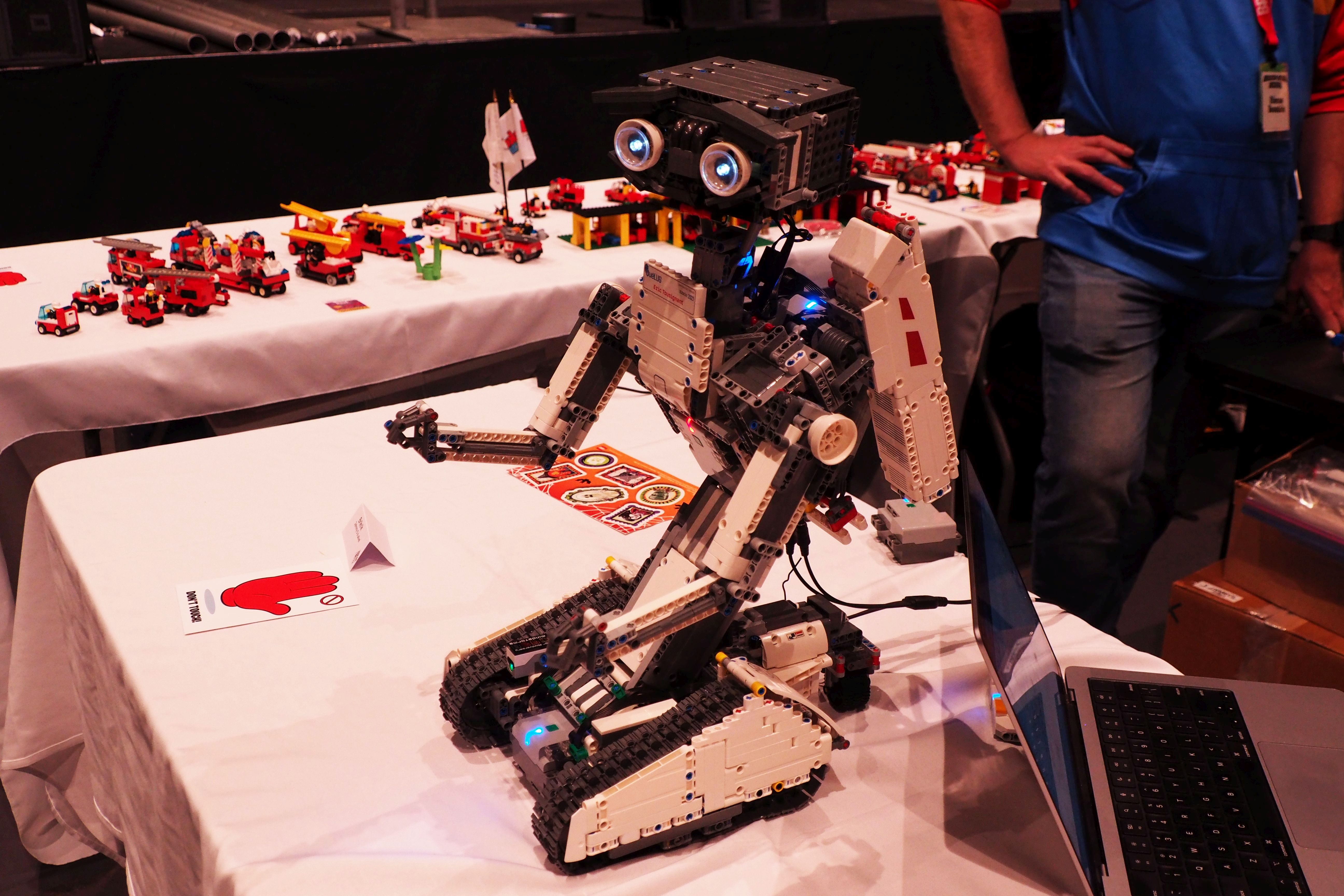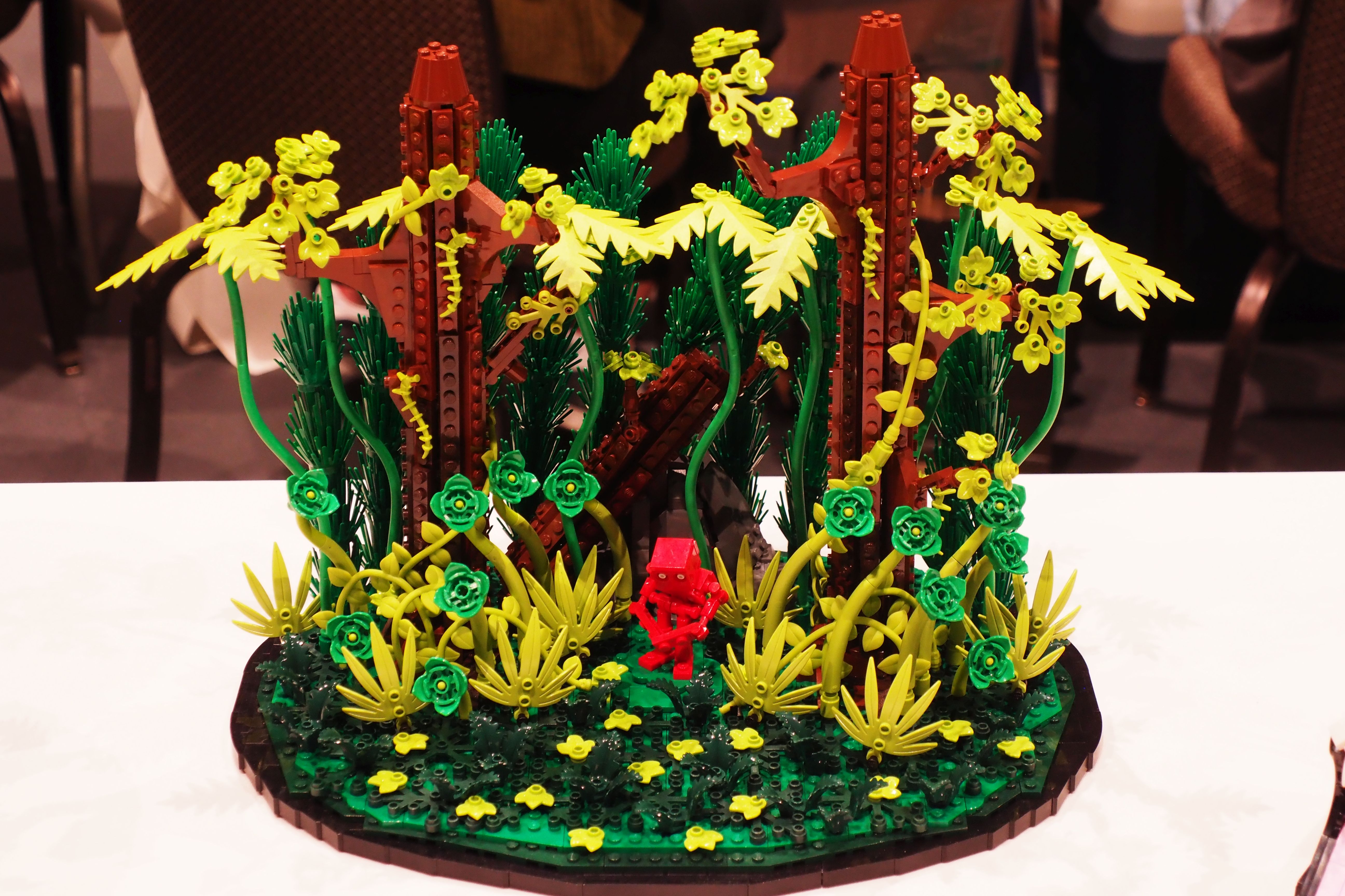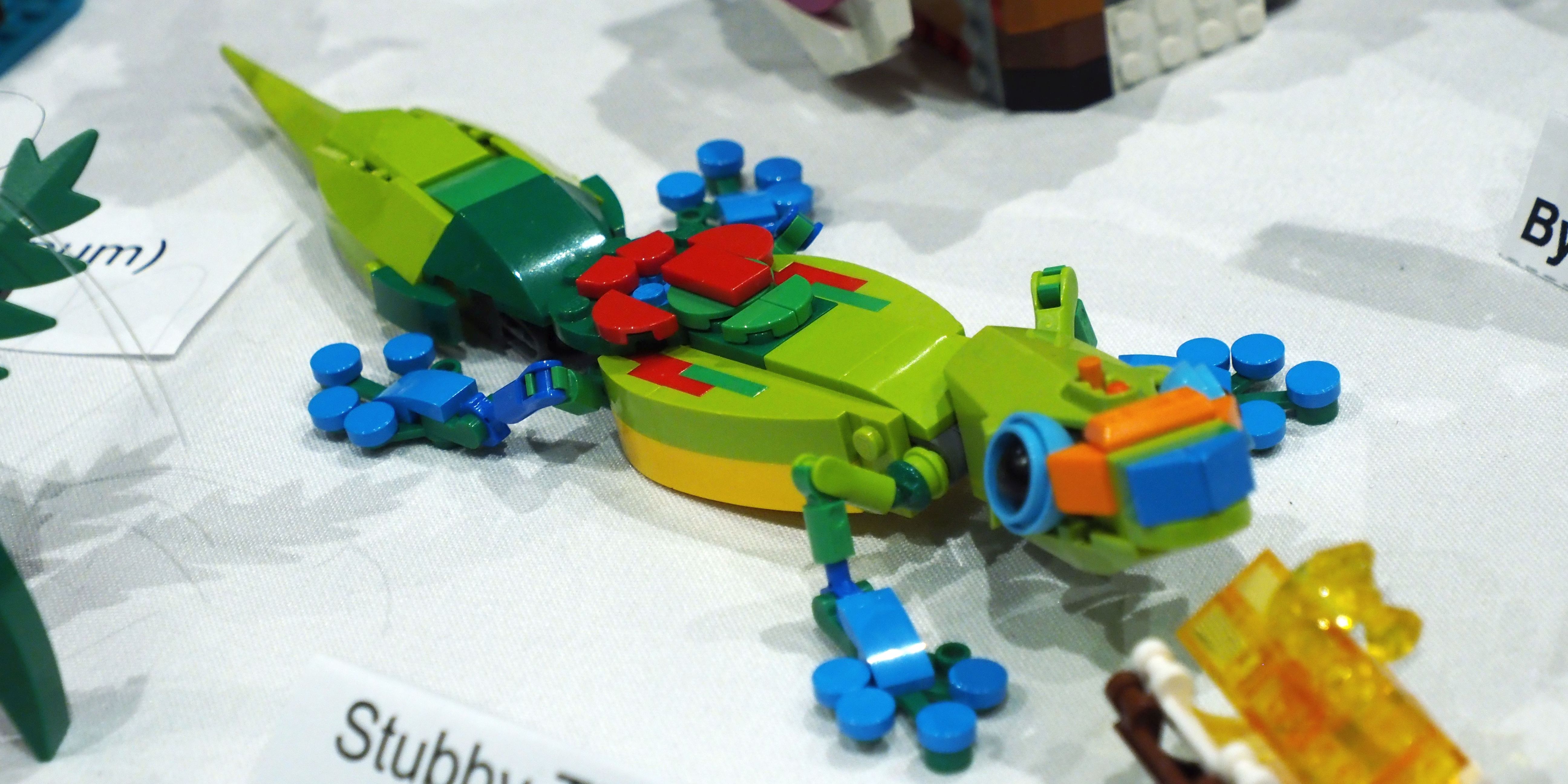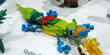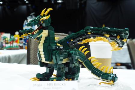 One of the draws at the show was the presence of some Lego celebrities, in the form of contestants on the TV series, Lego Masters. This wearable Lego apron below is by Stephen Joo. The dragon is by Maia Hughes.