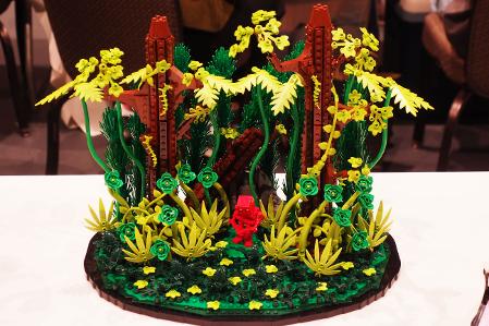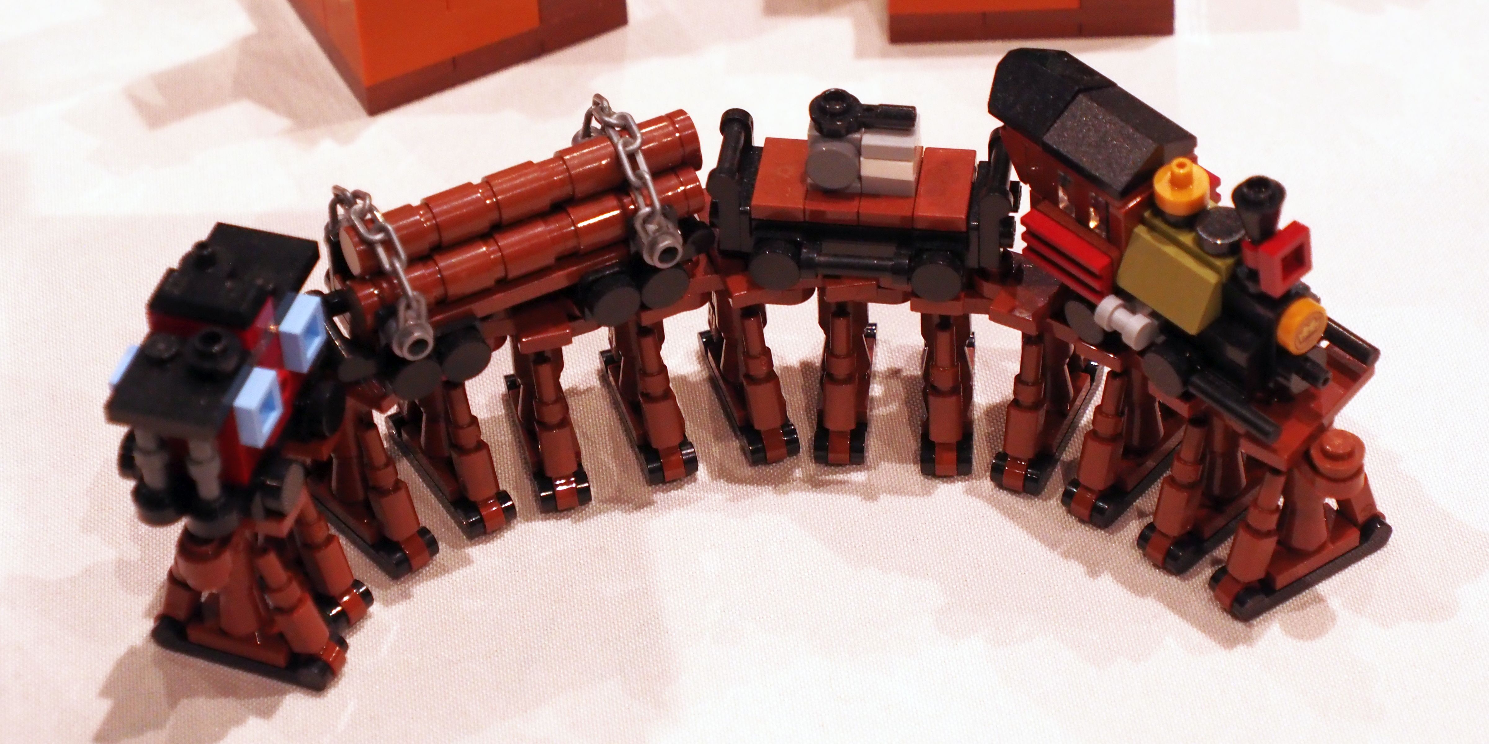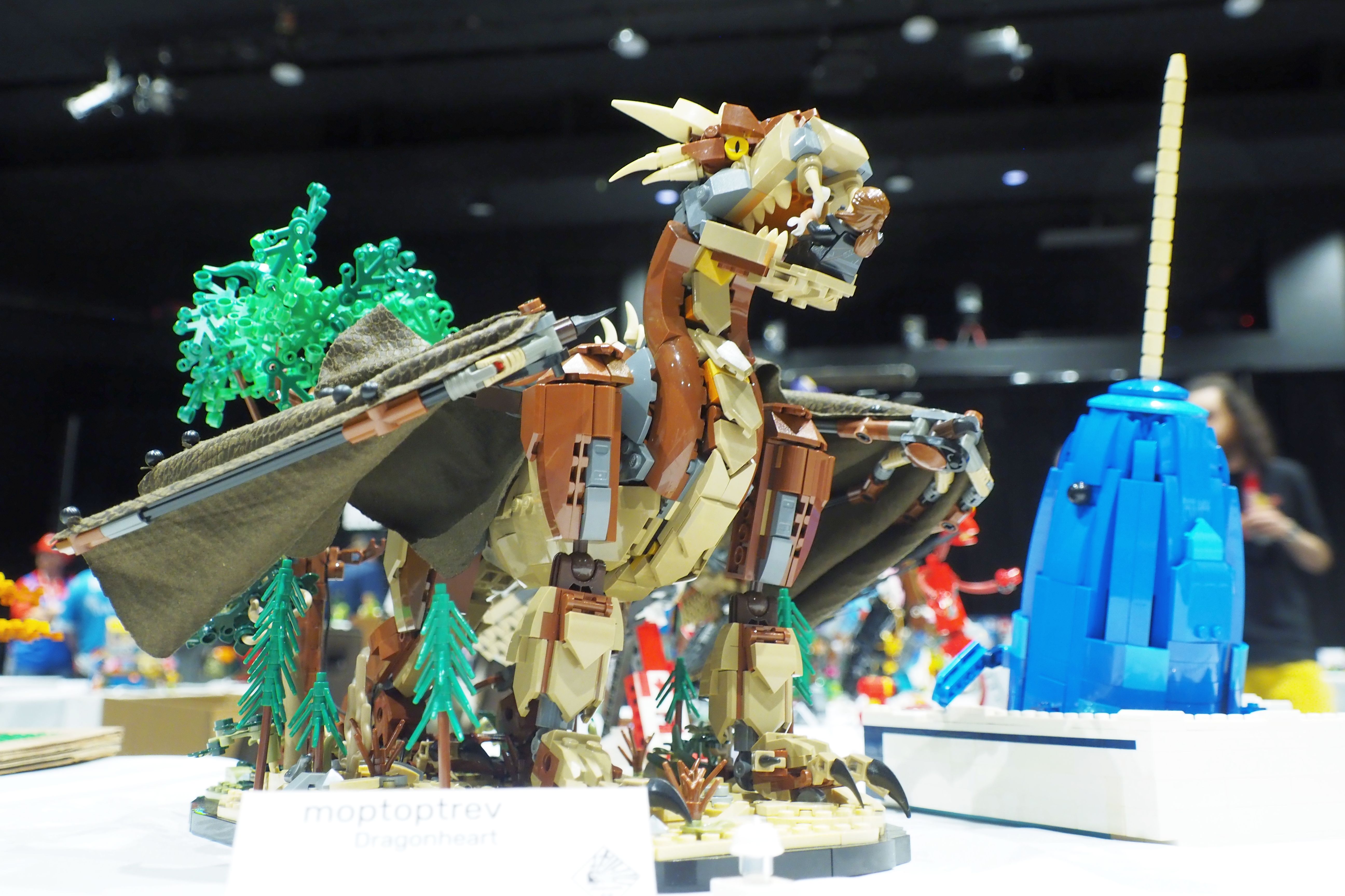 Dragons were well-represented at Bricksplosion. This one had great shaping, and the storytelling element of a Minifig fighting not to become a snack!